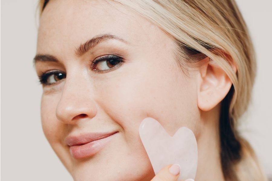 1. 使用簡易工具,刮痧板按摩面部肌肉